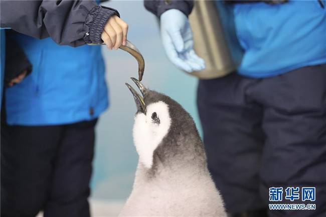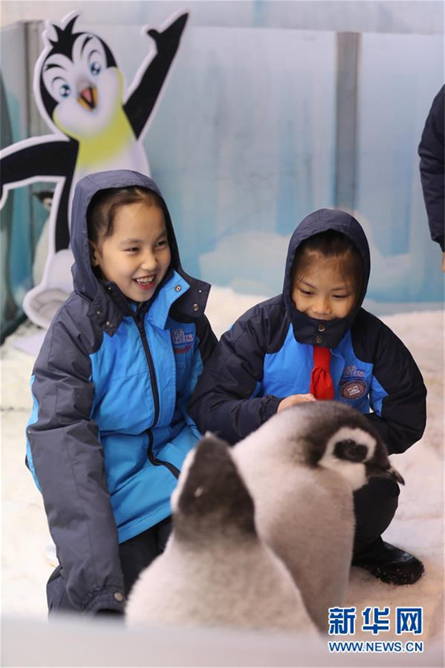 當(dāng)日,來自廣州和珠海的小學(xué)生代表來到珠海長隆海洋王國,參加企鵝關(guān)愛活動,零距離接觸今年新生的帝企鵝。本次活動旨在加強極地科普教育,提高小學(xué)生保護動物和呵護極地的意識。 新華社記者 盧燁 攝