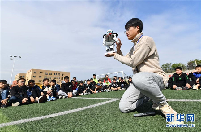 12月5日,在廣西融水苗族自治縣思源實(shí)驗(yàn)學(xué)校,譚博天在戶外給學(xué)生們上科技課。譚博天是西北工業(yè)大學(xué)的在讀碩士研究生,今年9月來到融水苗族自治縣思源實(shí)驗(yàn)學(xué)校,擔(dān)任班主任。 新華社記者 黃孝邦 攝