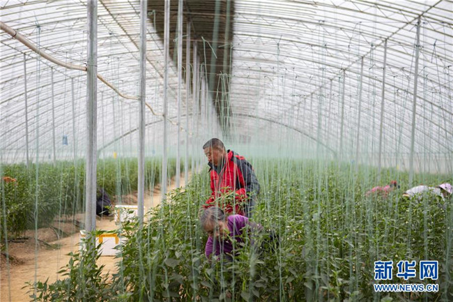 12月18日,在于都縣禾豐鎮(zhèn)一家富硒蔬菜種植基地,農民在采摘富硒辣椒。新華社記者 張浩波 攝