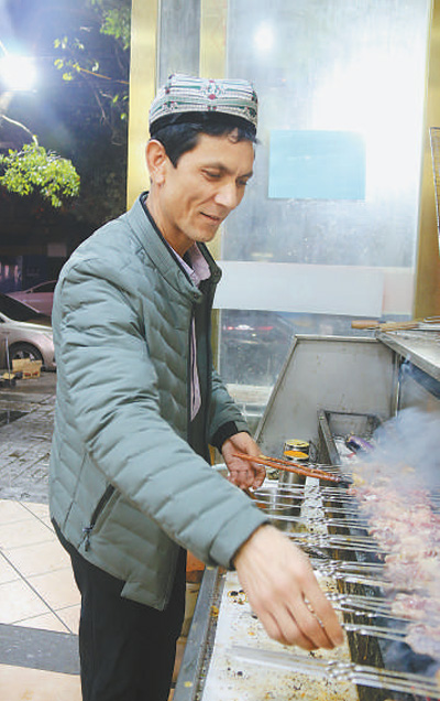 曾在阿布拉江烤肉王餐廳做過服務(wù)員的如則托合提夫婦,去年從和田老家來到南昌,經(jīng)過一年多學(xué)習,今年5月選擇“單飛”,開了一家屬于自己的燒烤店。“租門面、搞裝修,都是阿卜杜拉一手幫我弄的,還提供了兩萬元啟動資金。”談起眼下的生活,如則托合提非常滿意。