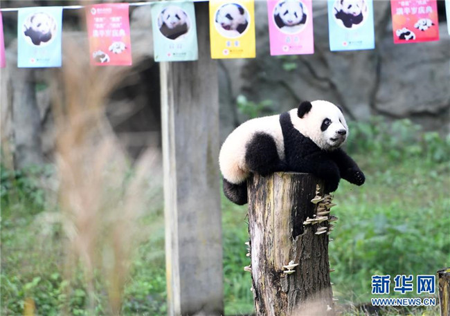 12月22日,重慶動物園1只半歲的大熊貓在戶外活動。當日,重慶動物園為4只大熊貓寶寶“雙雙”“重重”“喜喜”“慶慶”舉行半歲生日慶?;顒印?只半歲大熊貓在飼養(yǎng)員的照料下,在熊貓館運動場內(nèi)玩耍、嬉戲,與市民游客一同過冬至。新華社記者唐奕攝