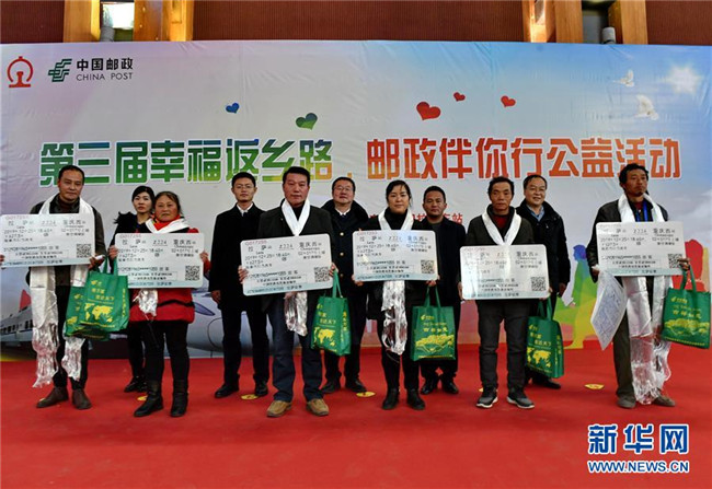 當(dāng)日,由中國郵政集團(tuán)公司西藏自治區(qū)分公司和青藏鐵路公司拉薩站共同組織的第三屆“幸福返鄉(xiāng)路·郵政伴你行”免費(fèi)贈(zèng)送火車票公益活動(dòng)在拉薩火車站舉行。中國郵政集團(tuán)公司西藏自治區(qū)分公司出資20余萬元購買12月23日至12月26日拉薩至成都、重慶、西寧、蘭州方向共計(jì)436張火車票,免費(fèi)贈(zèng)送給西藏外來務(wù)工人員。青藏鐵路公司拉薩站為受助務(wù)工人員設(shè)置專用安檢通道和候車專區(qū)。