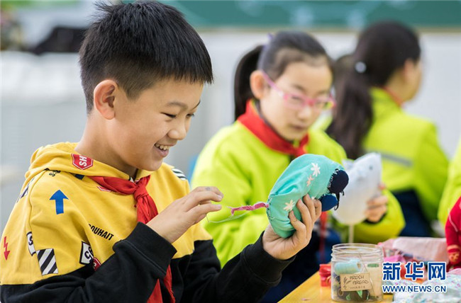 當(dāng)日,內(nèi)蒙古呼和浩特市玉泉區(qū)通順街小學(xué)“巧手社團(tuán)”的學(xué)生在老師的指導(dǎo)下,利用身邊的布頭、絲綿等廢棄物,制作生肖鼠布藝作品,表達(dá)對新年的美好祝愿。近年來,玉泉區(qū)教育部門大力推動“傳統(tǒng)文化進(jìn)校園”活動,在當(dāng)?shù)貙W(xué)校里開設(shè)剪紙、面塑、戲曲等民間藝術(shù)課程,讓學(xué)生感受傳統(tǒng)文化的魅力。 新華網(wǎng) 發(fā)(丁根厚 攝)