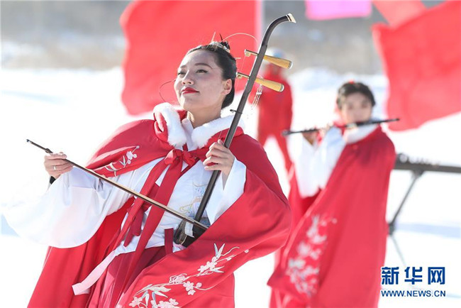 12月26日,表演者在啟動儀式上表演。當日,寧夏固原首屆冰雪文化旅游節(jié)在涇源縣婭豪國際滑雪場開幕。本屆冰雪文化旅游節(jié)以“相約六盤山·歡樂冬季游”為主題,將冰雪資源、文化旅游和體育賽事相結合,吸引游客參觀游玩。新華社記者賈浩成攝