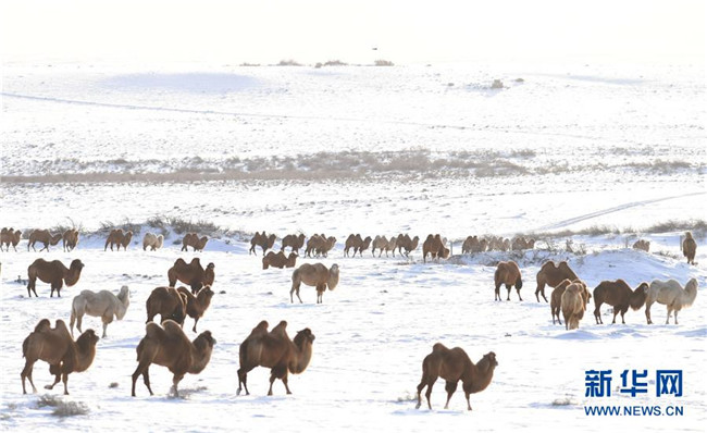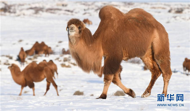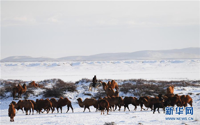 12月30日,牧民在新疆吉木乃縣“萬(wàn)駝園”放駱駝。新華社記者 沙達(dá)提 攝