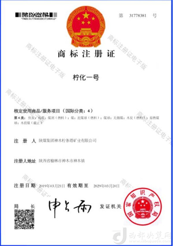 “檸條塔”混煤順利通過了陜西省名牌產(chǎn)品和中國名優(yōu)產(chǎn)品認證,“檸化一號”化工煤商標成功注冊。目前,檸條塔化工煤享譽浙江、河北、山東等地,成為了“免檢產(chǎn)品”。