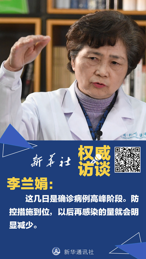 李蘭娟:之前為潛伏期的病人開始發(fā)病。早期武漢流到全國各地的病人以及留在武漢的病人都到了發(fā)病期,這是高峰來臨的一個(gè)階段,一點(diǎn)也不奇怪?,F(xiàn)在,發(fā)病的人我們隔離了,與他們有密切接觸的人員也調(diào)查出來、隔離起來,以后再感染的數(shù)量會(huì)明顯減少。武漢“封城”是非常英明的決策。正好趕上春節(jié)人口大流動(dòng),只有嚴(yán)格地把武漢控制起來,其他的地方才會(huì)減少發(fā)病率。