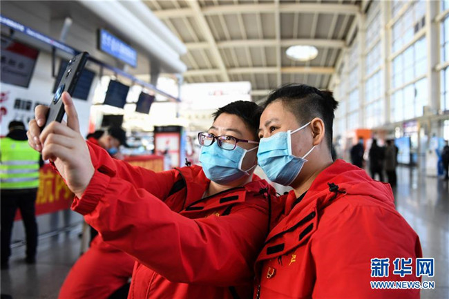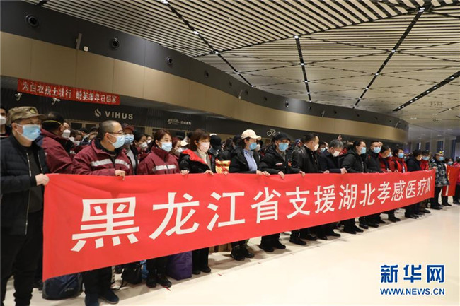 2月12日,黑龍江省對(duì)口支援湖北孝感醫(yī)療隊(duì)從哈爾濱出發(fā)。 新華社記者 齊泓鑫 攝