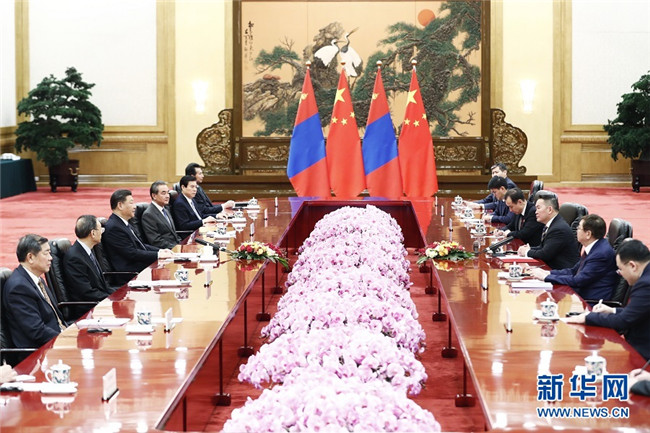 習(xí)近平指出,中蒙是山水相連的友好鄰邦。中方高度重視發(fā)展中蒙關(guān)系,始終將蒙古國作為中國周邊外交的重要方向。中方愿同蒙方一道,鞏固政治互信,加強共建“一帶一路”合作,共同推動構(gòu)建命運共同體,更好造福兩國人民,為地區(qū)和平穩(wěn)定發(fā)展作出貢獻。