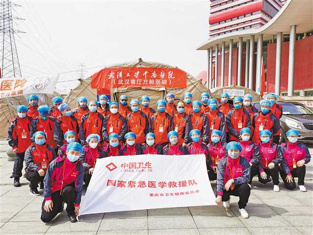 重慶市第四批支援湖北醫(yī)療隊(duì)又名重慶市國(guó)家緊急醫(yī)學(xué)救援隊(duì),由39名隊(duì)員組成,隨隊(duì)還有藥械車、普通門診車、特檢車、油電車等裝備。全隊(duì)于2月5日抵達(dá)武漢,先后完成在東西湖方艙和沌口方艙的全部醫(yī)療任務(wù)。3月8日,隨著沌口方艙休艙,醫(yī)療隊(duì)的工作暫時(shí)告一段落,于駐地休整待命。