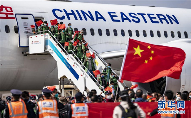 3月22日,云南省援鄂醫(yī)療隊(duì)隊(duì)員走下飛機(jī)。新華社記者 江文耀 攝