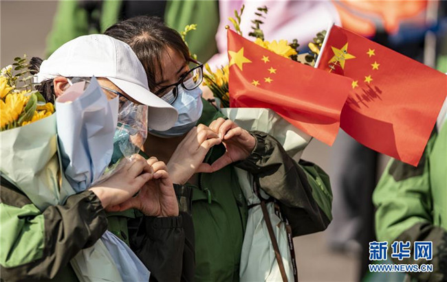 3月22日,云南省援鄂醫(yī)療隊(duì)隊(duì)員在昆明長水機(jī)場參加歡迎儀式。新華社記者 江文耀 攝
