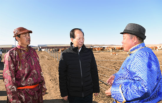 3月23日,自治區(qū)黨委書記、人大常委會(huì)主任石泰峰來到赤峰市克什克騰旗達(dá)來諾日鎮(zhèn)崗更嘎查西門塔爾牛養(yǎng)殖專業(yè)合作社,了解帶動(dòng)已脫貧戶穩(wěn)定長效增收情況。內(nèi)蒙古日報(bào)社融媒體記者 袁永紅 攝