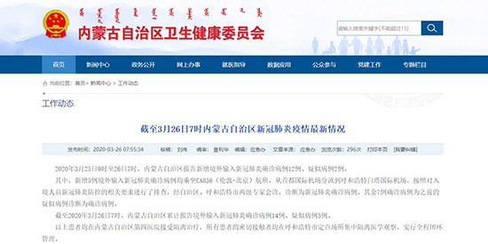截至2020年3月26日7時,內(nèi)蒙古自治區(qū)累計報告境外輸入新冠肺炎確診病例14例、疑似病例5例。