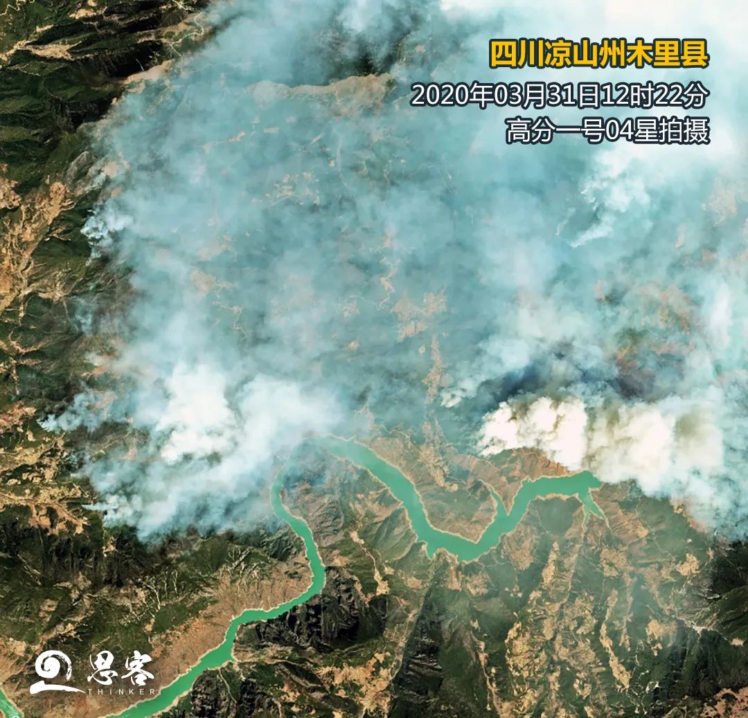 ▲衛(wèi)星遙感監(jiān)測(cè)四川涼山州森林大火。衛(wèi)星數(shù)據(jù)來(lái)源:高分一號(hào)