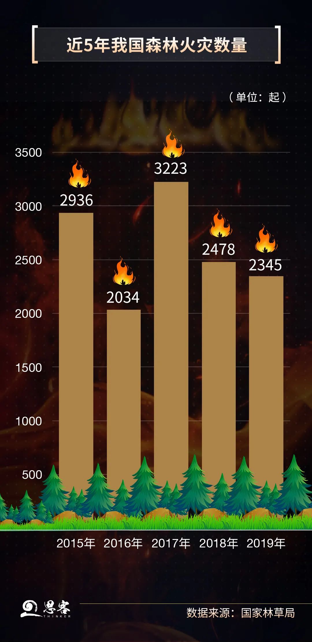2019年,我國(guó)全年共發(fā)生森林火災(zāi)2345起,受害森林面積約1.35萬(wàn)公頃,與2018年比,分別下降5.4%和17.2%。溫度、降水和濕度與森林火災(zāi)息息相關(guān),因此,干燥的冬春季節(jié)和春夏之交是我國(guó)森林火災(zāi)的易發(fā)高發(fā)期。從區(qū)域上看,華北地區(qū)、西南地區(qū)風(fēng)險(xiǎn)較高。