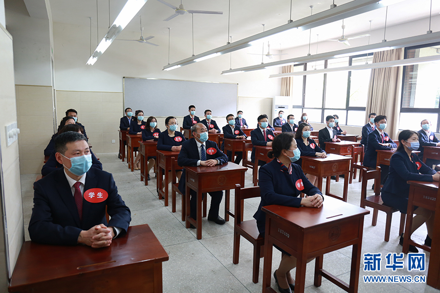 在西南大學附屬中學,上課前學生需提前洗手,在教室外間隔1米左右排隊等待班主任檢查后進入教室上課。班主任將戴好一次性醫(yī)用口罩和一次性手套逐一對學生進行體溫檢查,并做好檢查登記。圖為學生演習進教室環(huán)節(jié)。新華網發(fā)
