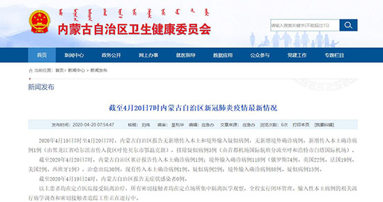 截至2020年4月19日24時(shí),內(nèi)蒙古自治區(qū)報(bào)告無癥狀感染者0例。