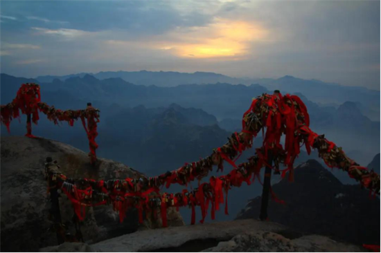 南峰海拔2154.9米,是華山最高主峰,也是五岳最高峰,古人尊稱它是“華山元首”。登上南峰絕頂,頓感天近咫尺,星斗可摘。舉目環(huán)視,但見群山起伏,蒼蒼莽莽,黃河渭水如絲如縷,漠漠平原如帛如綿,盡收眼底,使人真正領(lǐng)略華山高峻雄偉的博大氣勢,享受如臨天界,如履浮云的神奇情趣。