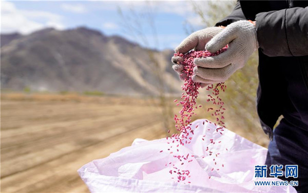 西藏拉薩市曲水縣茶巴朗村農(nóng)民播種的“藏青2000”種子(4月22日攝)。4月22日,西藏拉薩市曲水縣茶巴朗村進(jìn)行“藏青2000”春播活動(dòng)。西藏是全球唯一大規(guī)模集中種植青稞的地區(qū),也是青稞馴化和多樣化品種的栽培中心。新華社記者普布扎西 攝