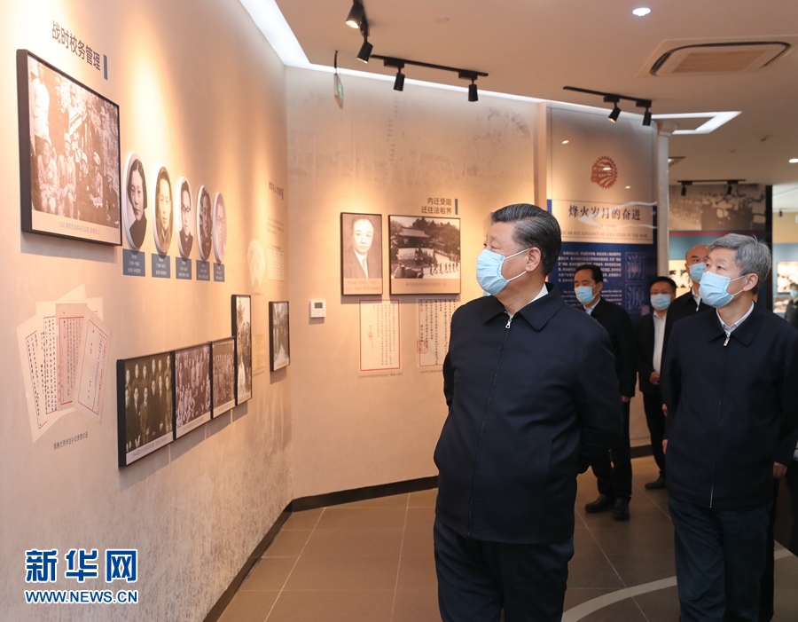 4月20日至23日,中共中央總書記、國家主席、中央軍委主席習近平在陜西考察。這是4月22日,習近平在西安交通大學交大西遷博物館參觀。 新華社記者 鞠鵬 攝