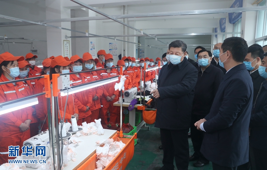 安康市地處秦巴山區(qū)集中連片特困地區(qū)的核心區(qū)。21日上午,習近平來到安康市平利縣老縣鎮(zhèn)錦屏社區(qū)。錦屏社區(qū)累計安置搬遷貧困群眾1346戶4173人。習近平實地察看了社區(qū)電子加工廠、毛絨玩具廠、服飾公司產(chǎn)品展示廳,對當?shù)?ldquo;山上興產(chǎn)業(yè),山下建社區(qū),社區(qū)辦工廠”的發(fā)展思路給予肯定,勉勵企業(yè)努力克服疫情帶來的不利影響,積極拓展國內(nèi)市場。習近平強調(diào),今年是脫貧攻堅決戰(zhàn)決勝之年,解決好貧困群眾就業(yè)問題非常重要。各級黨委和政府要加大扶持力度,通過各種方法保障貧困群眾就業(yè)。鎮(zhèn)上的群眾聽說總書記來了,紛紛來到街上,高聲向總書記問好。習近平祝鄉(xiāng)親們幸福安康!