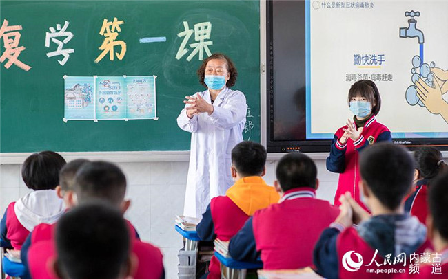 內(nèi)蒙古呼和浩特市第十二中學(xué)校醫(yī)為學(xué)生講解疫情防護(hù)知識和衛(wèi)生常識,上好開學(xué)第一課。