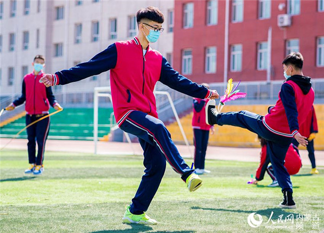 內(nèi)蒙古呼和浩特市第十二中學(xué)學(xué)生在課間進(jìn)行體育鍛煉。
