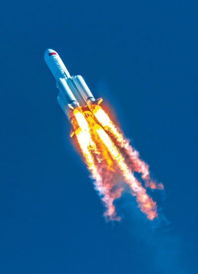 長(zhǎng)征五號(hào)B運(yùn)載火箭正在升空。陳 肖攝(人民視覺)