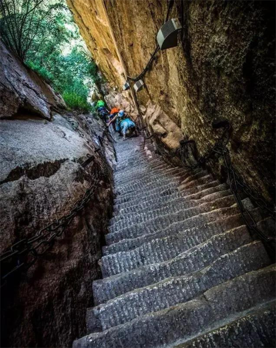 其如履薄刃,絕壑千尺的地勢(shì)使得很多游客膽戰(zhàn)心驚,其中最著名的就是韓愈大哭投書求助的故事。