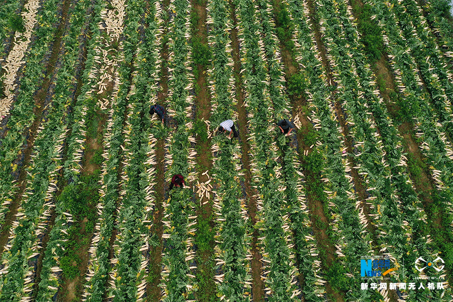 重慶市黔江區(qū)白石鎮(zhèn)鳳山村白蘿卜成熟了。新華網(wǎng)發(fā)(楊敏 攝)