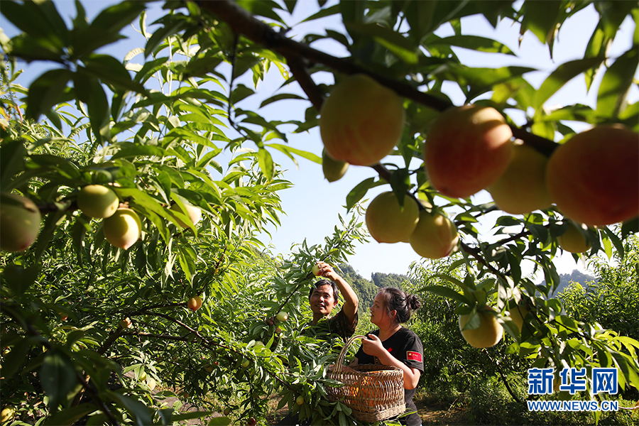 重慶市黔江區(qū)黑溪鎮(zhèn)蘇維村村民龐春武家的桃子成熟了。新華網(wǎng)發(fā)(楊敏 攝)