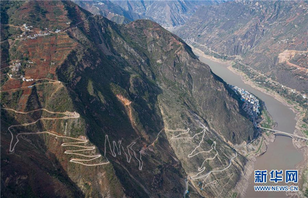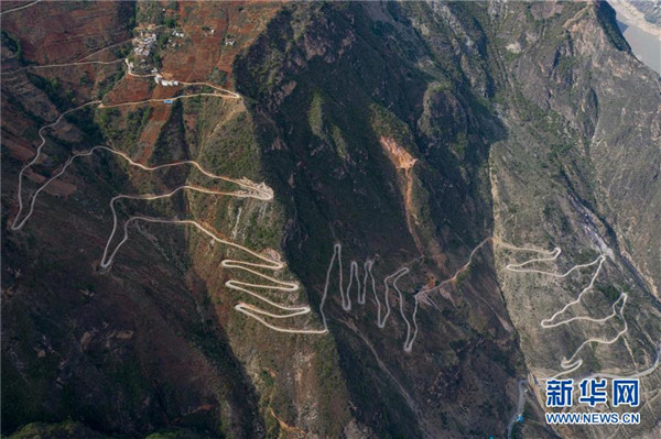 金陽縣蘆稿鎮(zhèn)大灣子村12公里左右的通村公路,28個(gè)彎蜿蜒盤旋在金沙江峽谷懸崖絕壁邊(6月7日攝,無人機(jī)照片)。坐落在金沙江畔的四川省金陽縣是國(guó)家級(jí)深度貧困縣,境內(nèi)群山連綿起伏,海拔落差大,眾多村寨處于高山或者高半山上,道路施工難度大。近年來,當(dāng)?shù)卣畬⒔煌ㄗ鳛槊撠毠?jiān)的先導(dǎo)性工程,路越修越寬、越修越好,成為當(dāng)?shù)厝罕姷拿撠氈赂宦?。截?019年底,金陽縣實(shí)現(xiàn)所有鄉(xiāng)鎮(zhèn)通油路、建制村通硬化路,鄉(xiāng)道里程達(dá)329.9公里,村道里程達(dá)866.8公里。新華社記者江宏景攝