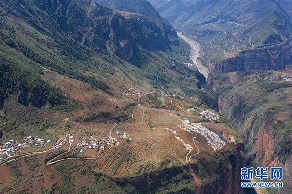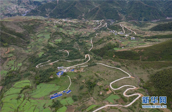金陽縣天地壩鎮(zhèn)通往吉史里口村易地扶貧搬遷集中安置點(diǎn)的道路(6月7日攝,無人機(jī)照片)。坐落在金沙江畔的四川省金陽縣是國(guó)家級(jí)深度貧困縣,境內(nèi)群山連綿起伏,海拔落差大,眾多村寨處于高山或者高半山上,道路施工難度大。近年來,當(dāng)?shù)卣畬⒔煌ㄗ鳛槊撠毠?jiān)的先導(dǎo)性工程,路越修越寬、越修越好,成為當(dāng)?shù)厝罕姷拿撠氈赂宦贰=刂?019年底,金陽縣實(shí)現(xiàn)所有鄉(xiāng)鎮(zhèn)通油路、建制村通硬化路,鄉(xiāng)道里程達(dá)329.9公里,村道里程達(dá)866.8公里。新華社記者江宏景攝