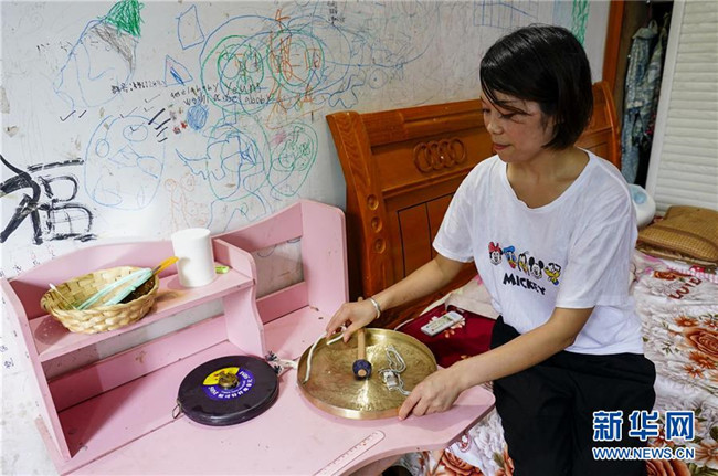 7月1日,一次巡查監(jiān)測結(jié)束后,侯芳將鑼、哨和卷尺按照自己的習慣整齊地放置在床頭的柜子上。 新華社記者 劉潺 攝
