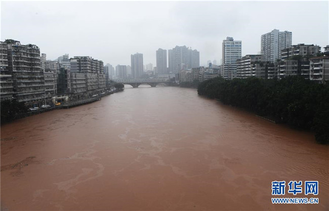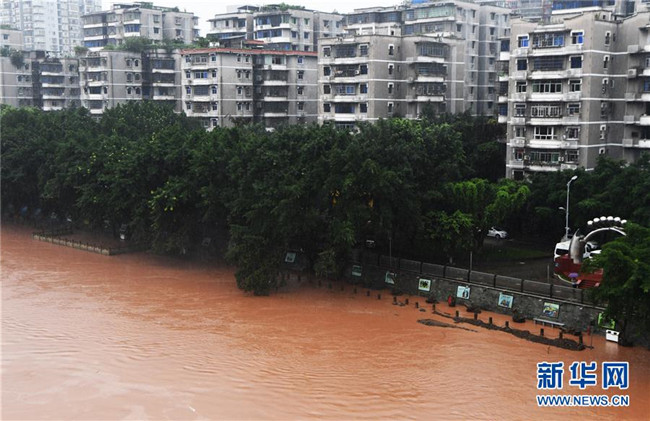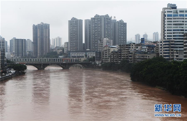 7月7日,洪水穿過(guò)綦江城區(qū)。新華社記者 王全超 攝
