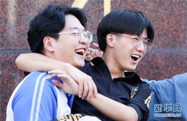 7月8日,在吉林省長春市第八中學考點門口,考生慶祝高考結束。 當日,全國部分地區(qū)2020年高考結束。 新華社發(fā)(顏麟蘊攝)