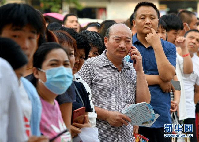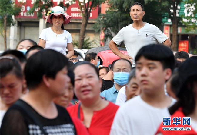 7月8日,在河南省寶豐縣第一高級中學考點,家長在考場外等候考生。 當日,全國部分地區(qū)2020年高考結束。 新華社記者 李嘉南 攝