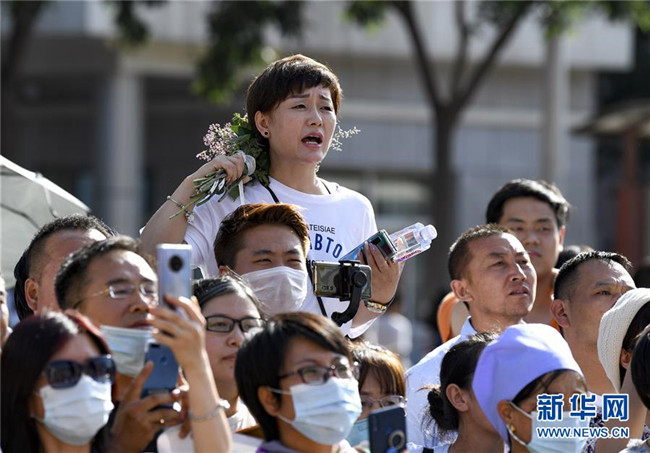 7月8日,在黑龍江省哈爾濱市第三中學考點外,家長們迎接考生。 當日,全國部分地區(qū)2020年高考結束。 新華社發(fā)(張濤攝)