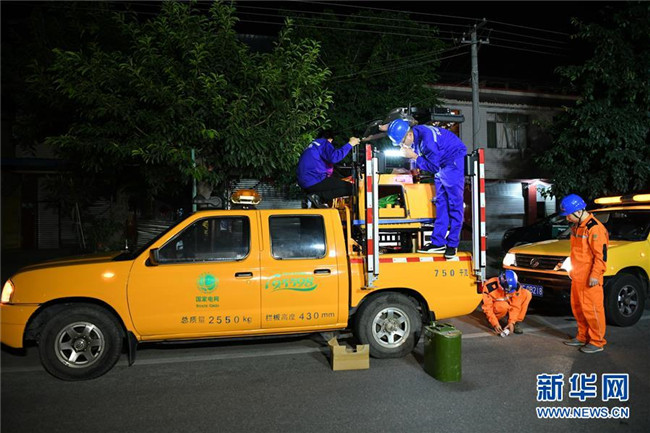 7月9日凌晨,在廣漢市南豐鎮(zhèn)元盛村,電力部門在調(diào)試設(shè)備提供應(yīng)急照明。 7月8日晚,四川省廣漢市南豐鎮(zhèn)元盛村一花炮廠發(fā)生火災(zāi)并引發(fā)的爆炸事故,已導致6人受傷,其中2人重傷,4人輕傷。事故原因正在調(diào)查中。 新華社記者 王曦 攝