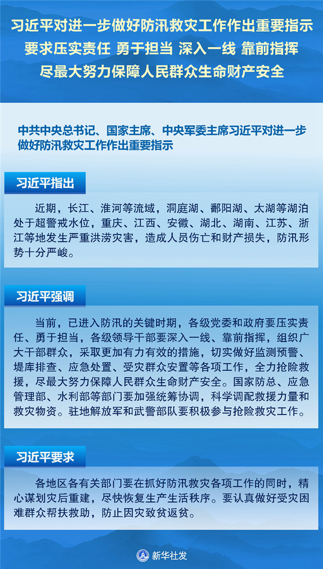 中共中央總書(shū)記、國(guó)家主席、中央軍委主席習(xí)近平對(duì)進(jìn)一步做好防汛救災(zāi)工作作出重要指示。