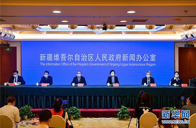 8月9日,新疆維吾爾自治區(qū)人民政府新聞辦公室在烏魯木齊市舉行新聞發(fā)布會(huì)。 新華社記者 宋彥樺 攝