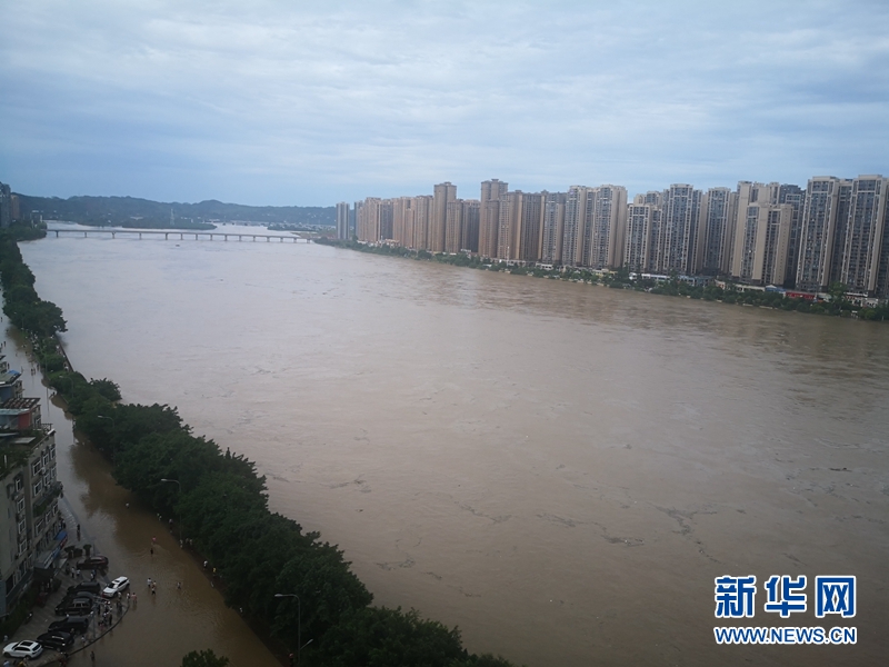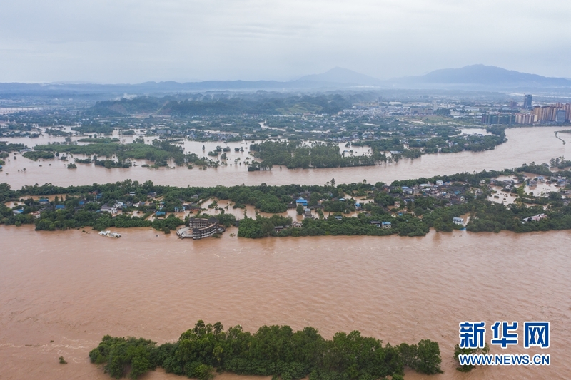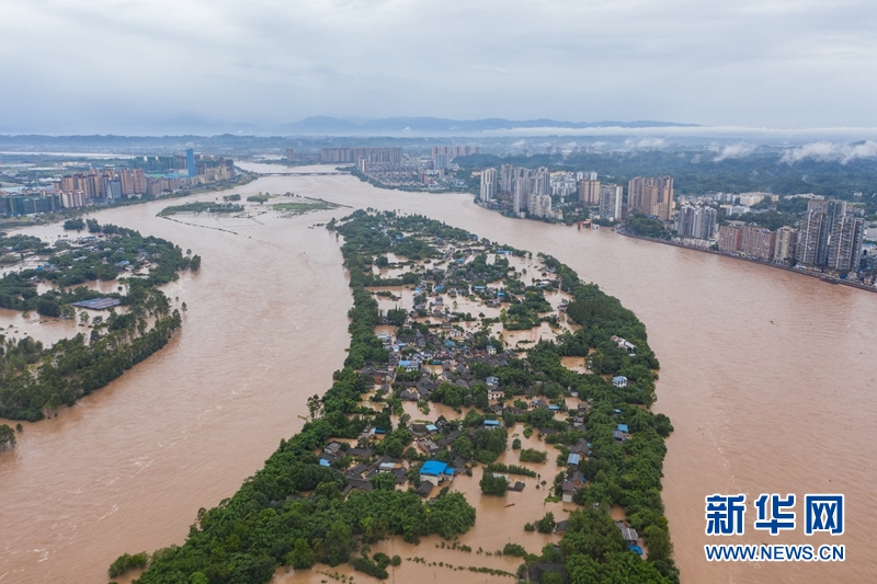 洪水中的樂山市區(qū)。