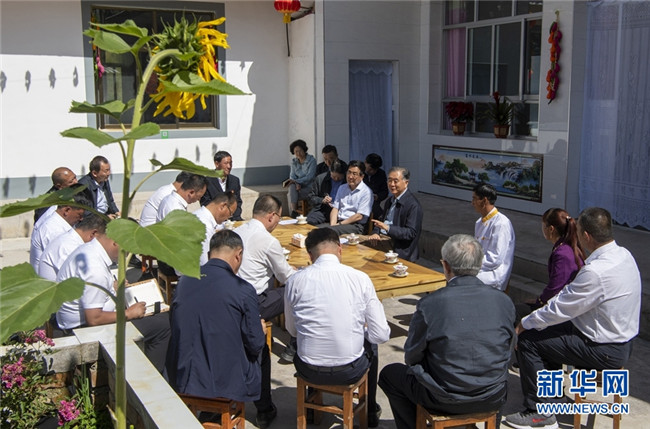 這是會(huì)前,汪洋在康樂縣與省市縣鄉(xiāng)村五級(jí)扶貧干部座談,聽取關(guān)于鞏固脫貧成果與鄉(xiāng)村振興有效銜接的建議。 新華社記者 李學(xué)仁 攝