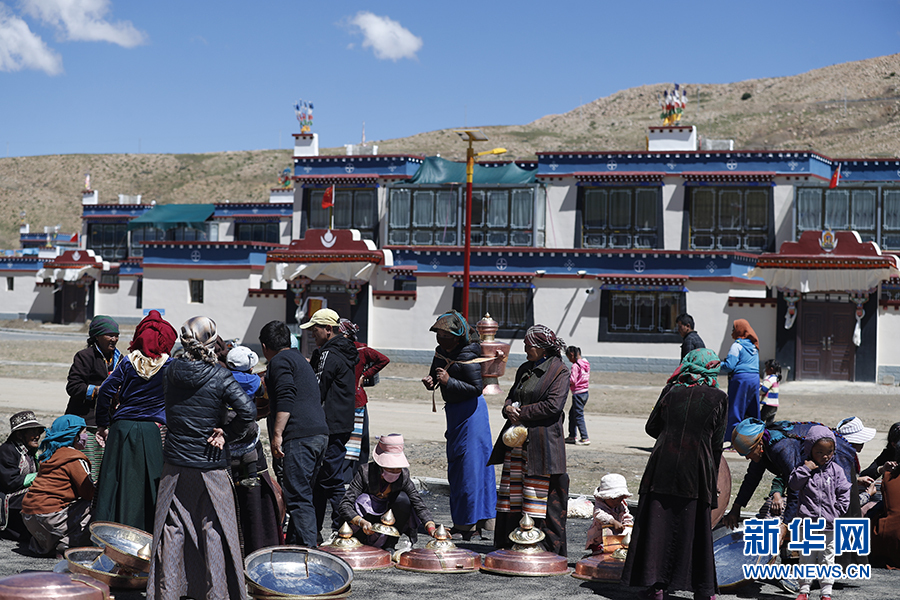 白瑪?shù)膵寢尪松纤钟筒瑁贿吅戎钟筒?,一邊和我聊起新房的事情。白瑪?shù)膵寢屨f(shuō),以前住在山頂上,房屋密集、布局混亂,排水系統(tǒng)落后。新村建成后,她們就搬了下來(lái),村里配套設(shè)施齊全,房子住起來(lái)也舒適。