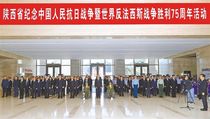 9月3日,陜西省在延安市隆重舉行紀念中國人民抗日戰(zhàn)爭暨世界反法西斯戰(zhàn)爭勝利75周年活動,深切緬懷革命先烈,大力弘揚延安精神,動員和激勵全省干部群眾不忘初心、牢記使命,為奮力譜寫陜西新時代追趕超越新篇章、實現(xiàn)中華民族偉大復(fù)興的中國夢而努力奮斗。