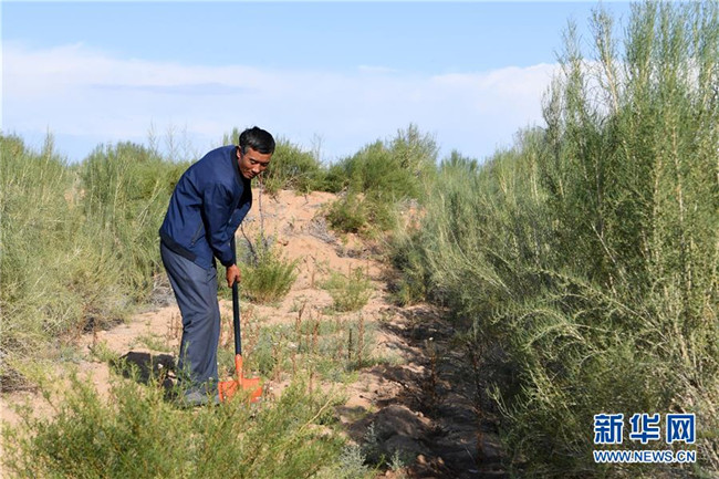 張世俊治沙造林,每個月有3000元的收入。加上家里種的日光大棚,年收入達到7萬元。