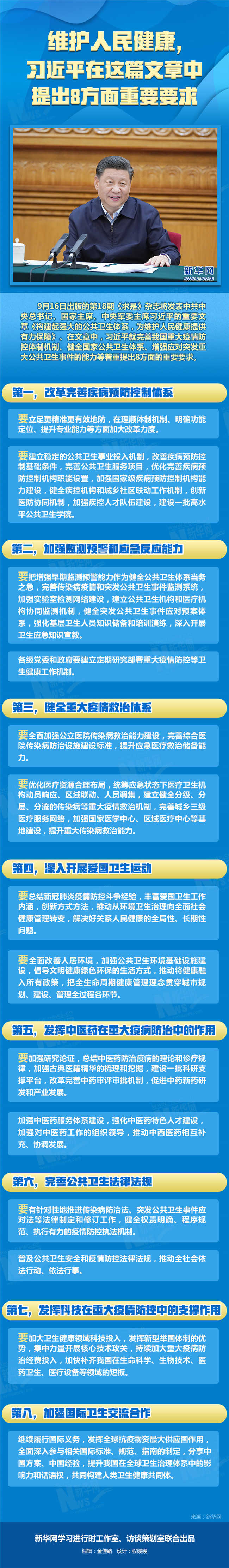 維護(hù)人民健康,習(xí)近平在這篇文章中提出8方面重要要求