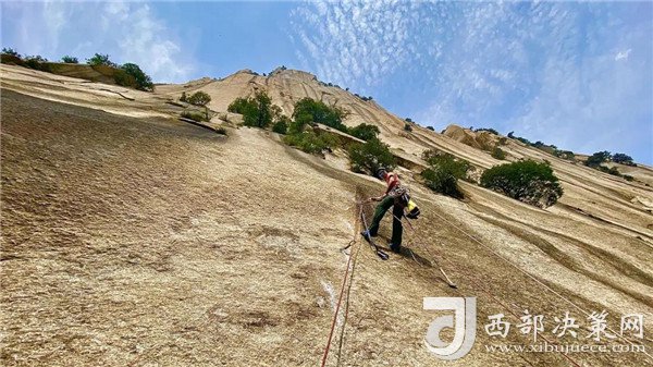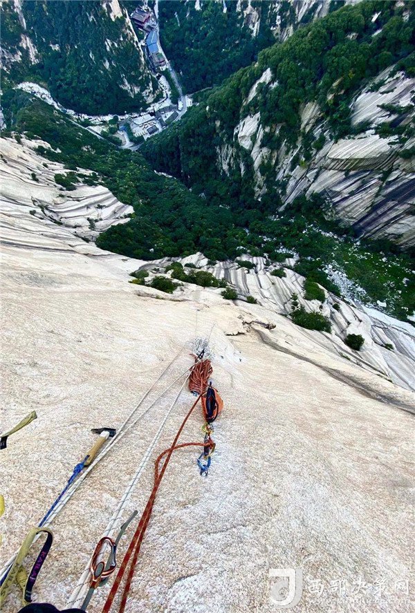 自然巖壁結(jié)組挑戰(zhàn)賽選手成功登頂。挑戰(zhàn)了華山白云峰六百多米的花崗巖大巖壁,并在巖壁上生活了兩天,不僅向大家展示了運動員的專業(yè)攀巖技術(shù),更展示了超強的野外生存能力。