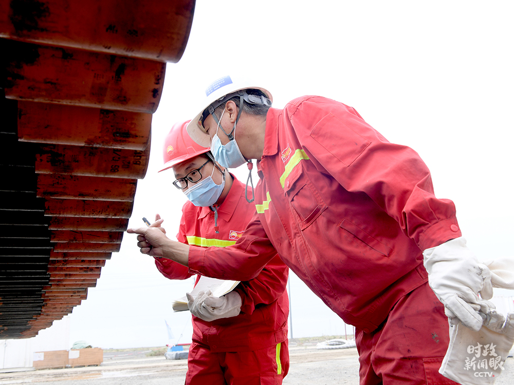 △中國(guó)石油大學(xué)(北京)克拉瑪依校區(qū)2020屆畢業(yè)生王首都(左)在克拉瑪依鉆井一線工作。